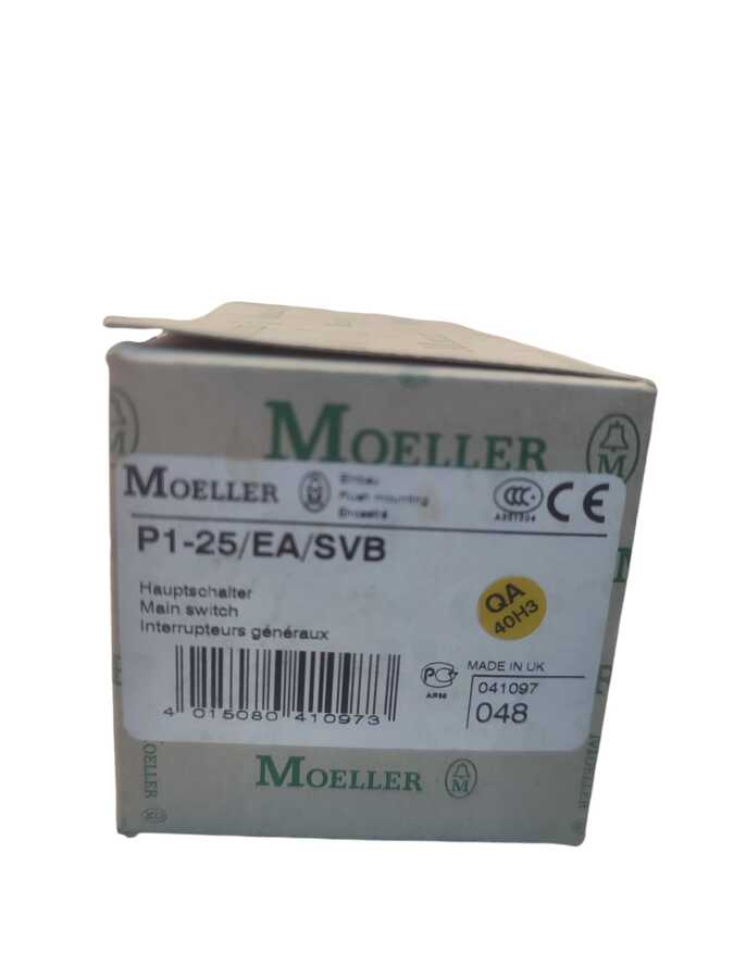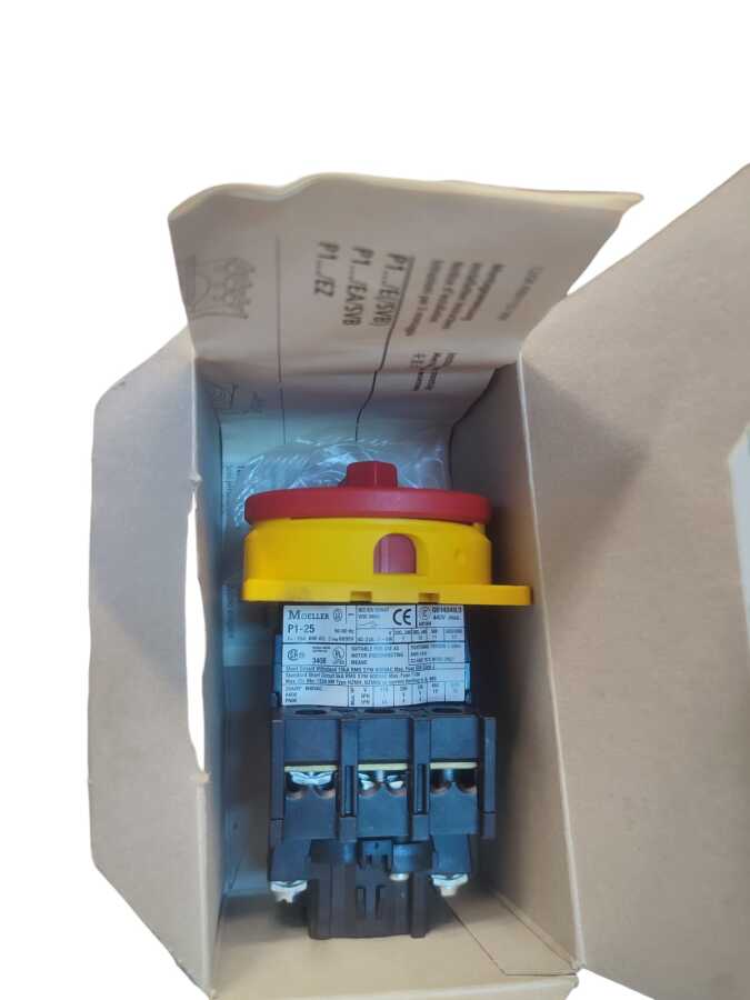 The P1-25/EA/SVB from Eaton Moeller is a flush mounting 3 pole main switch for emergency-stop function.